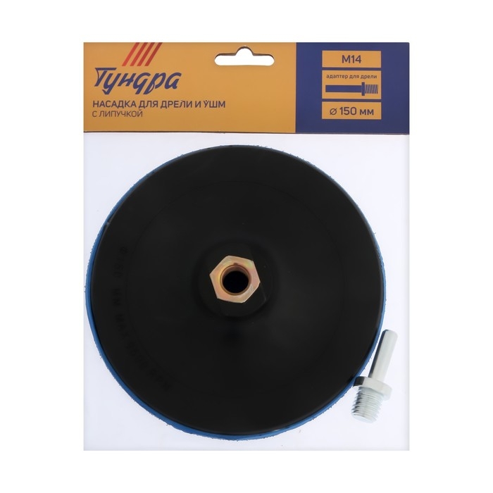 Насадка с липучкой для дрели и УШМ ТУНДРА, М14, с адаптером, твердая, 150 мм