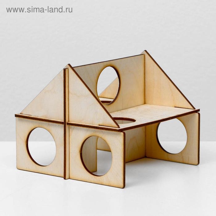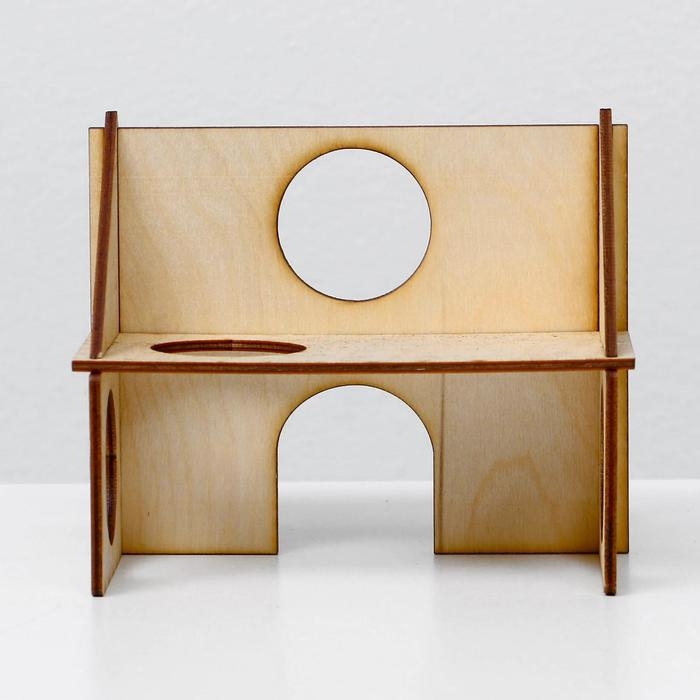 Домик для грызунов изготовлен из фанеры высшего сорта с ошкуренными краями без окрашивания.