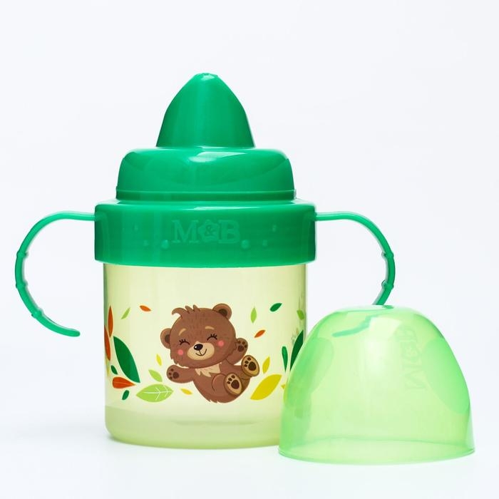 Поильник детский с твёрдым носиком «Мишутка. Мамы и малыши», 150 мл., с ручками, цвет зеленый