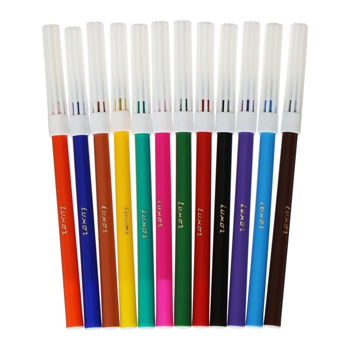 Фломастеры Luxor Coloring специально предназначены для детей от 3-х лет. Они имеют специальное строение пишущего узла, который при сильном нажатии не деформируется и не вдавливается. Чернила на водной основе легко отстирываются с одежды и смываются с рук водой. Фломастеры Luxor Coloring представлены с круглой формой корпуса и безопасным вентилируемым колпачком.