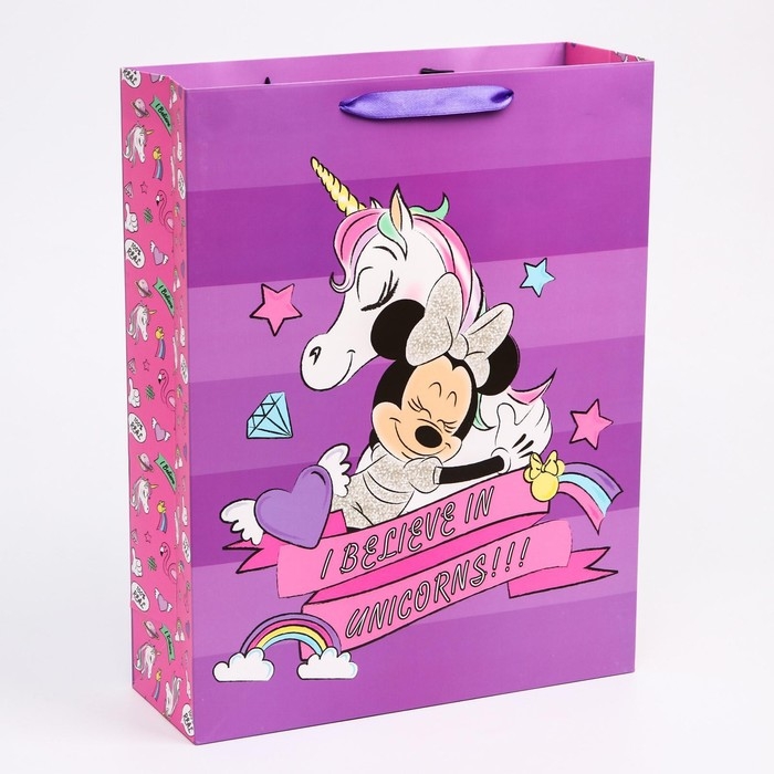 Пакет подарочный, 31х40х11 см, упаковка, Минни Маус и Единорог