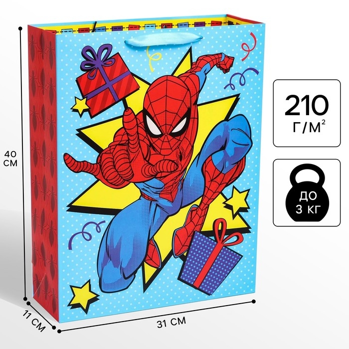 Пакет подарочный "С Днем рождения" 31х40х11 см, упаковка, Человек-паук