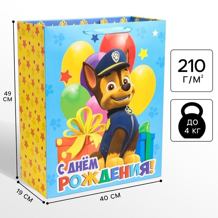 Пакет подарочный "С Днем рождения" 40х49х19 см, упаковка, Щенячий патруль
