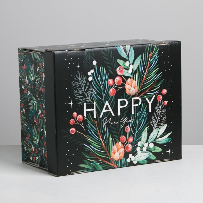 Коробка подарочная новогодняя складная «С наилучшими пожеланиями», 30.7 х 22 х 9.5 см, Новый год