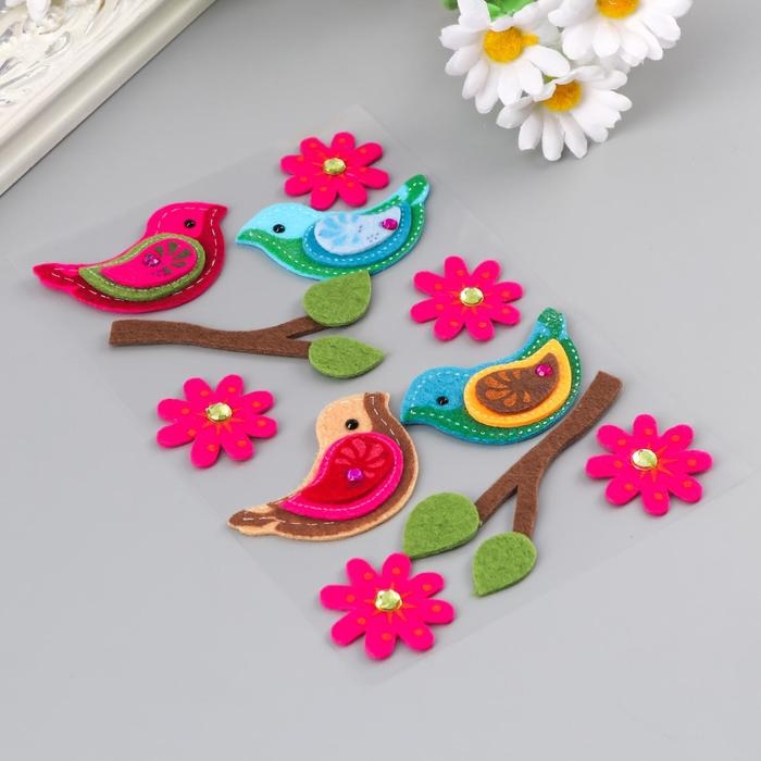 Наклейки из фетра "Птички" (набор 11 шт) ассорти