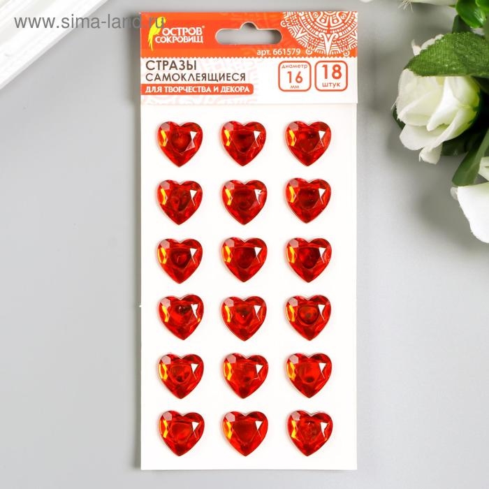 Стразы самоклеящиеся "Сердце", красные,16 мм (набор 18 шт)