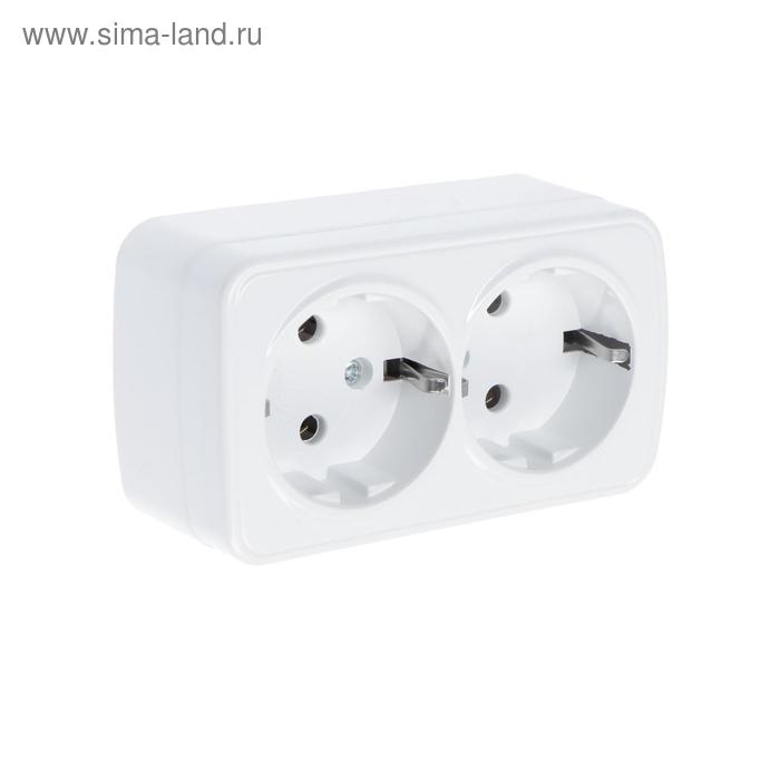 Розетка двухместная TOT Elegant, 16 А, скрытая, с з/к, белая