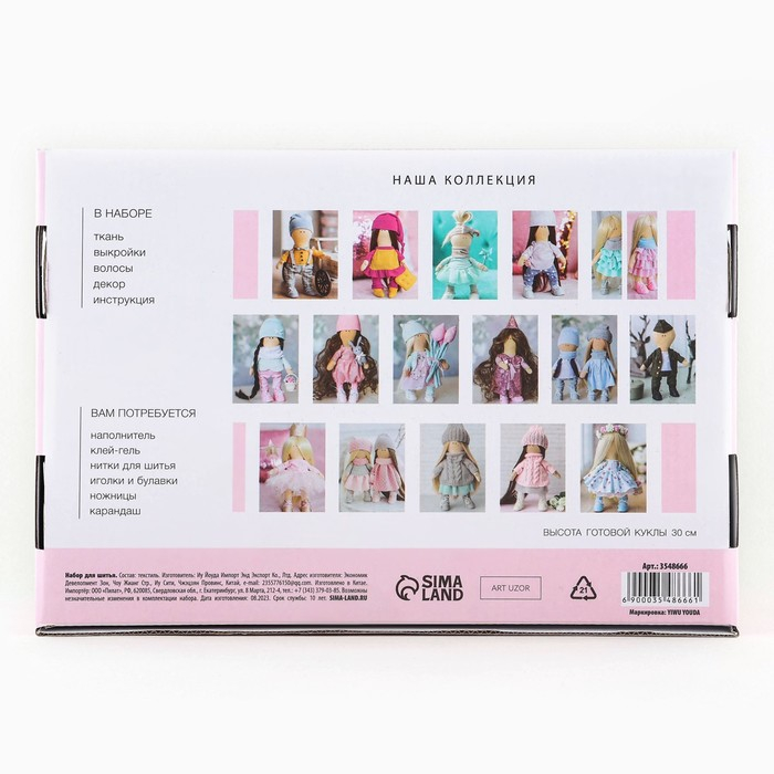 Мягкая кукла «Карла», набор для шитья 21 × 0,5 × 29,7 см