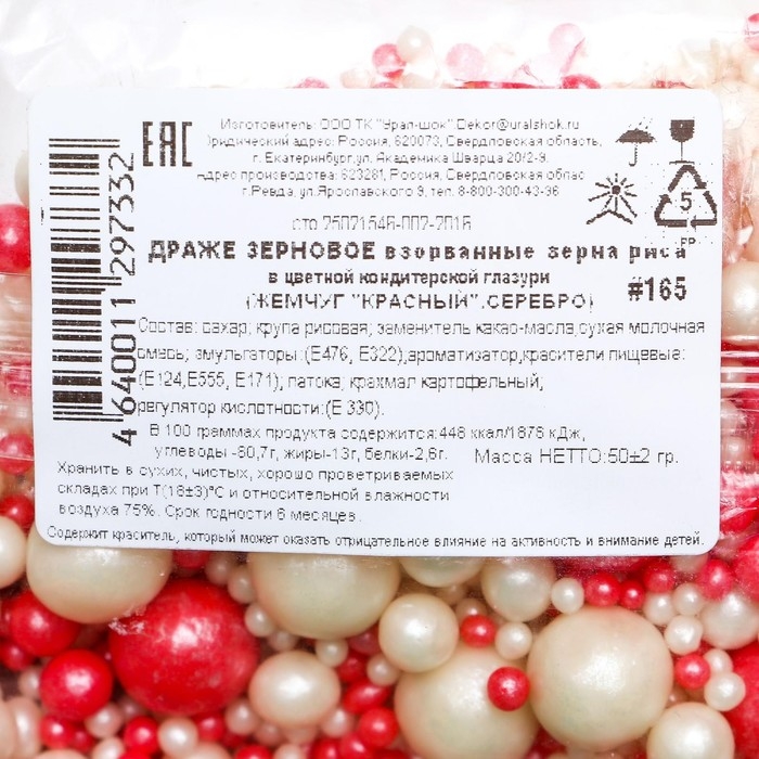 Кондитерская посыпка с мягким центром "Жемчуг": красная, серебряная, 50 г