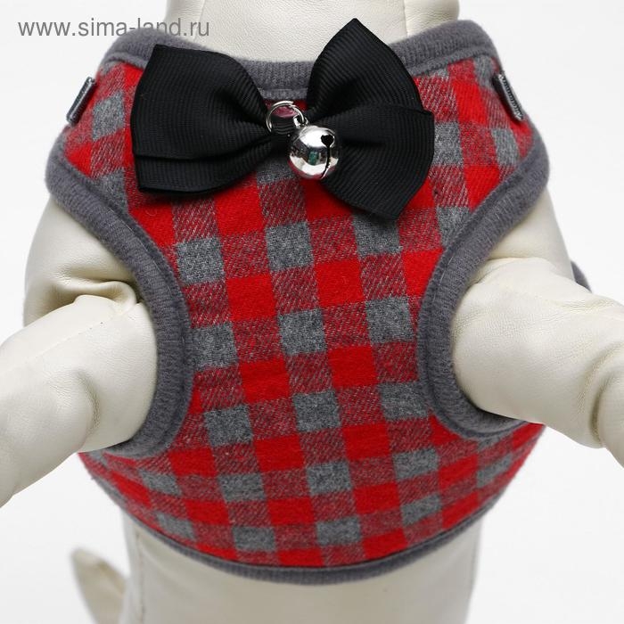 Стильный прогулочный комплект для собак в клетку с украшением в виде бабочки и бубенцом. Шлейка регулируется, поводок круглый прочный , ручка поводка не доставляет неудобств для вас при натежении. Шлея для собак 3 , 5 , 10 , 15 кг средних и мелких пород : шпица , бульдога , чихуахуа , йорка , мопс , такс и маленьких и больших кошек , котов типа мейн кун . Шлейка текстильная , регулируется металическим креплением. Поводок крепится к металлическому кольцу карабином. Шлейка исключит побег животного, если правильно подобрать размер и отрегулировать ремни.