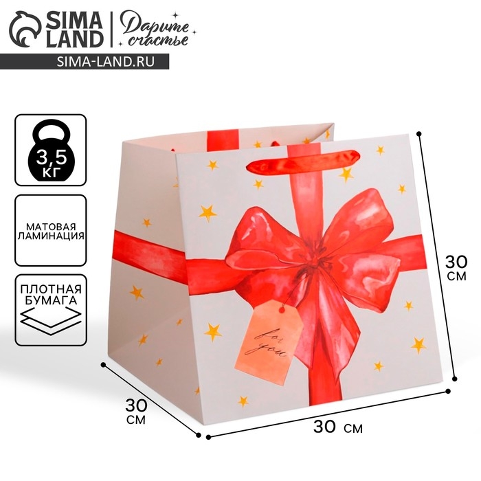 Пакет подарочный квадратный, упаковка, «For you», 30 х 30 х 30 см