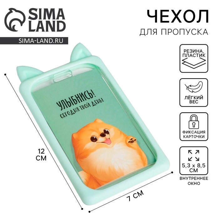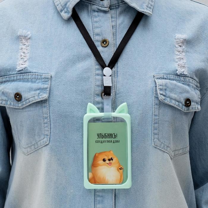 Чехол для бейджа с ушками «Улыбнись», 7 х 12 см