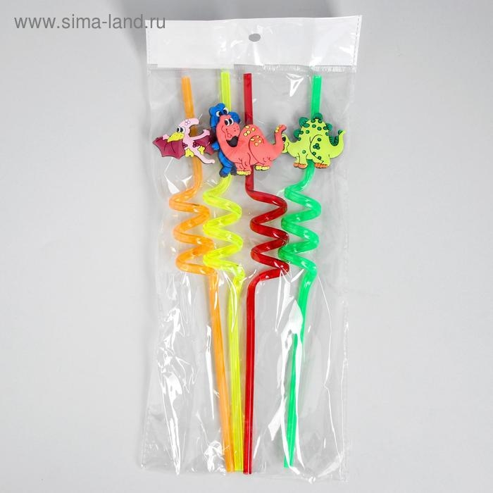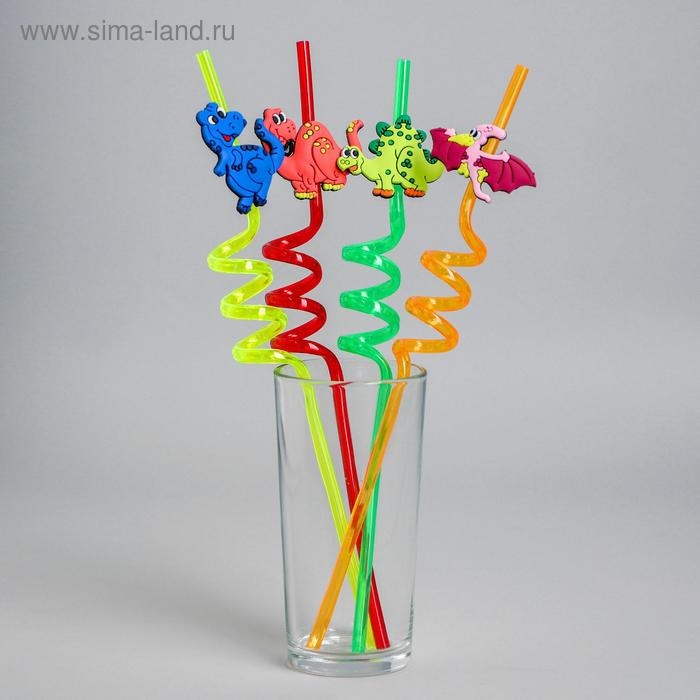 Трубочка из пластика «Динозавр», набор 4 шт., МИКС