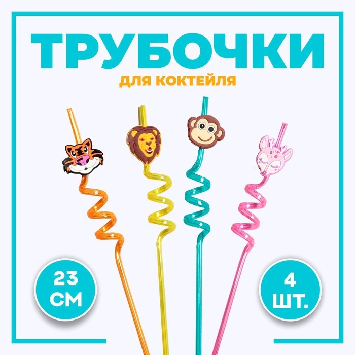 Трубочка из пластика «Сафари», набор 4 шт., МИКС