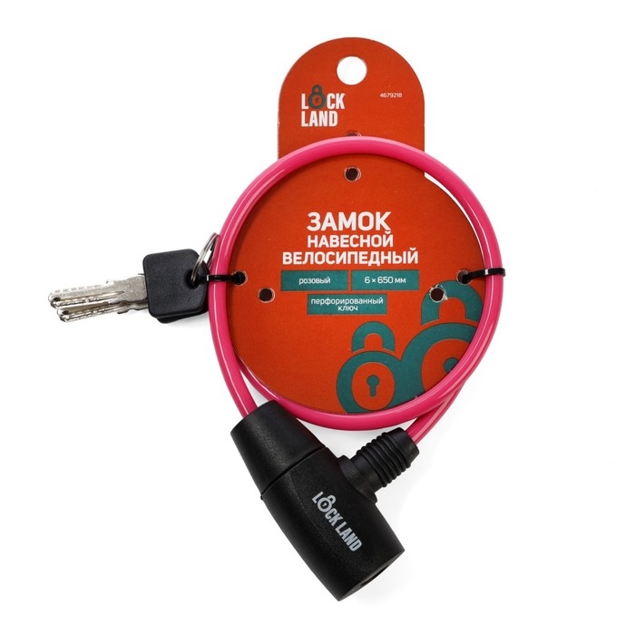 Замок навесной велосипедный LOCKLAND, 6х650 мм, перфорированный ключ, розовый