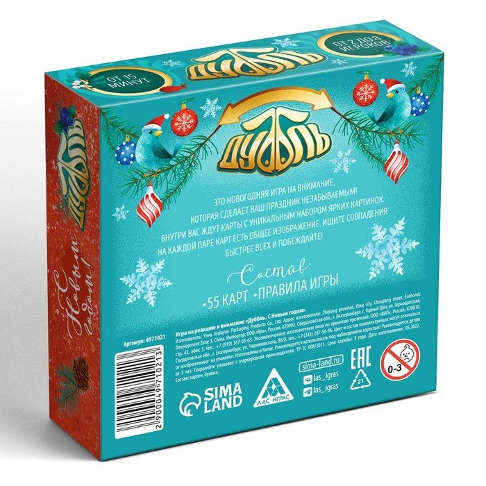 Новогодняя настольная игра «Новый год:Дуббль», 55 карт, 5+