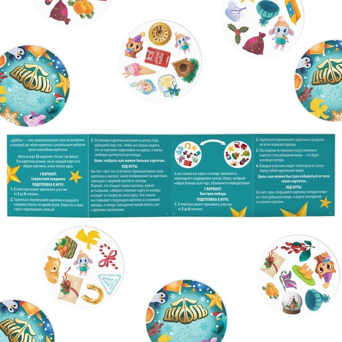 Новогодняя настольная игра «Новый год: Дуббль. Настроение», 55 карт, 5+