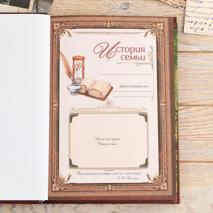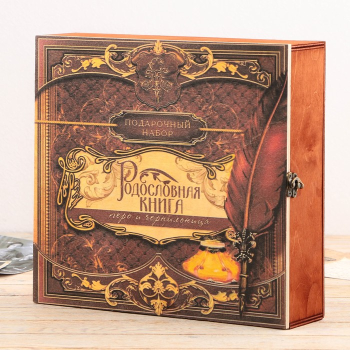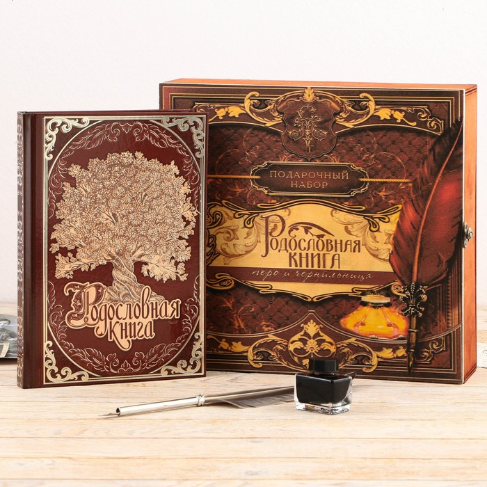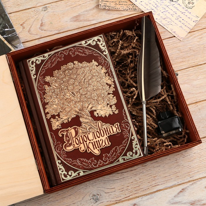 Семейные традиции — самое ценное, что есть в жизни человека. Кто из нас не хочет оставить память о себе и своих близких будущим поколениям? Ведь история может быть поводом для гордости! Для создания летописи вам пригодится наш подарочный набор с родословной книгой, пером и чернильницей.