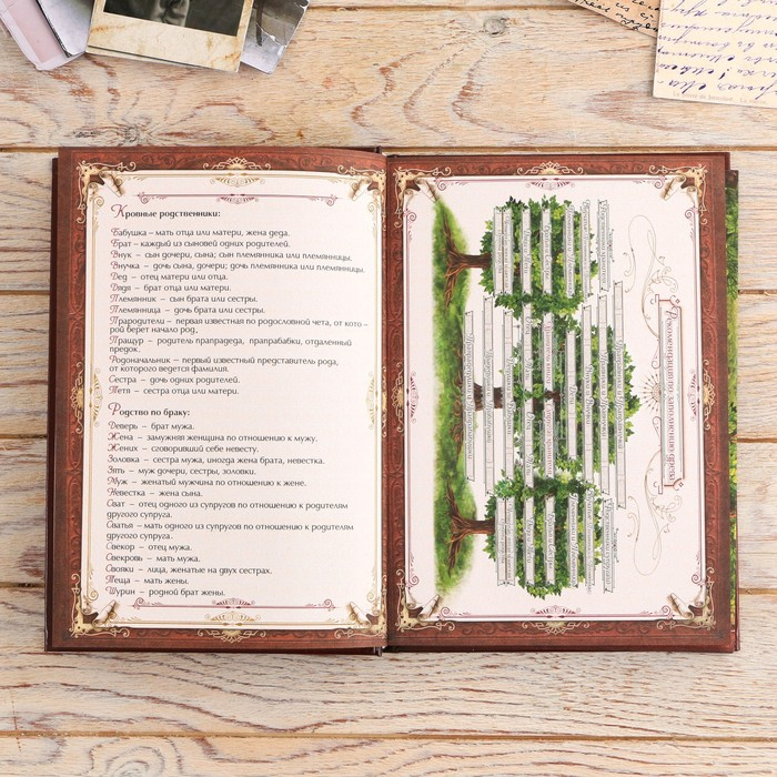Родословная книга «Семейная летопись», с деревянным элементом, 84 страницы, 24,5 х 23 х 4 см.