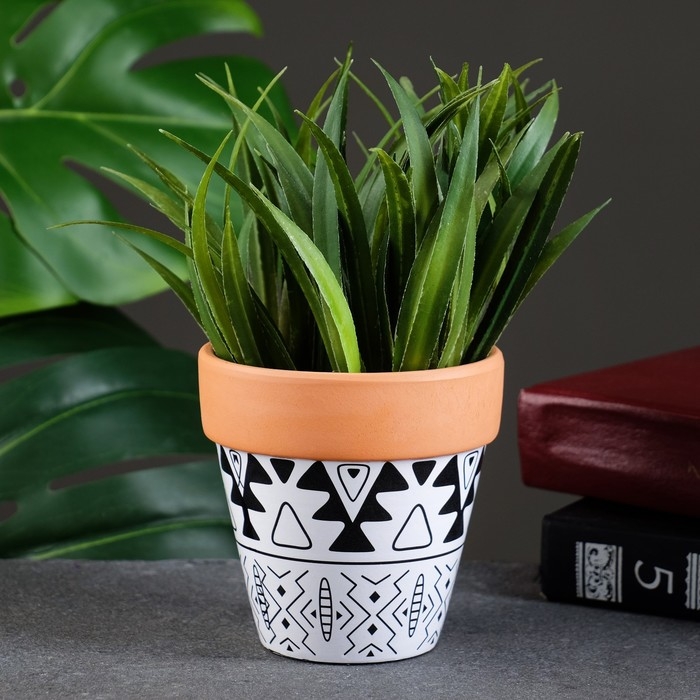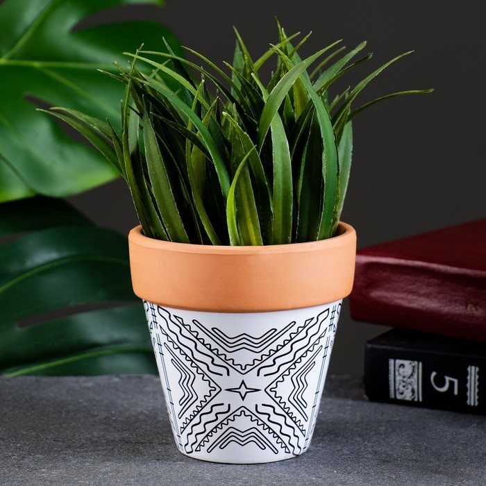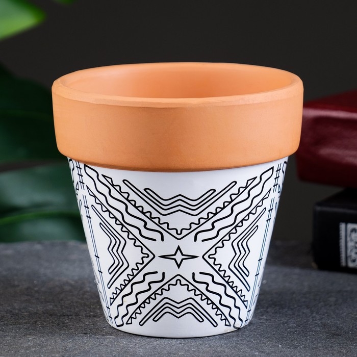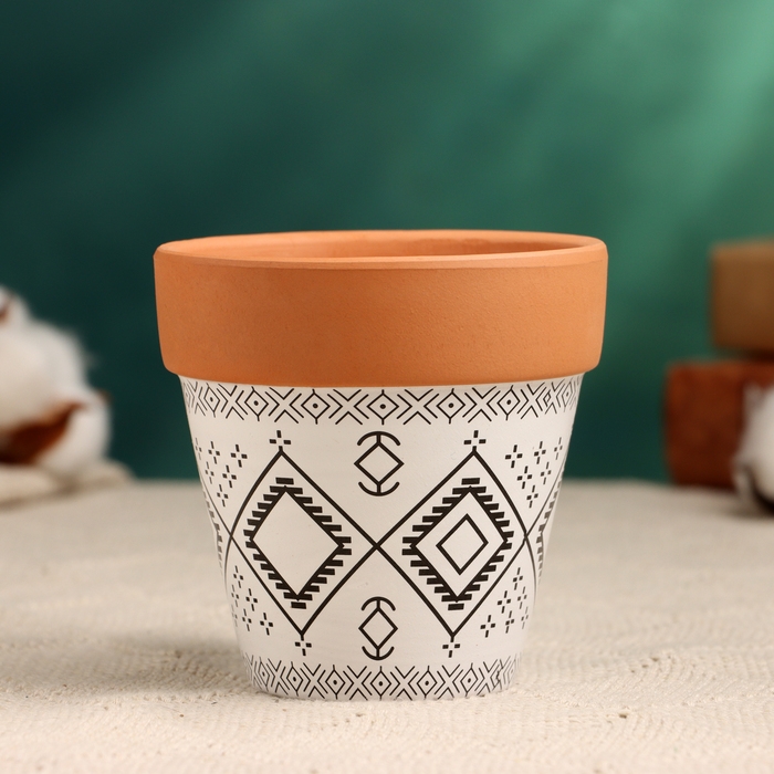 Горшок "Трапеция" терракот с узором, 10х9см, МИКС