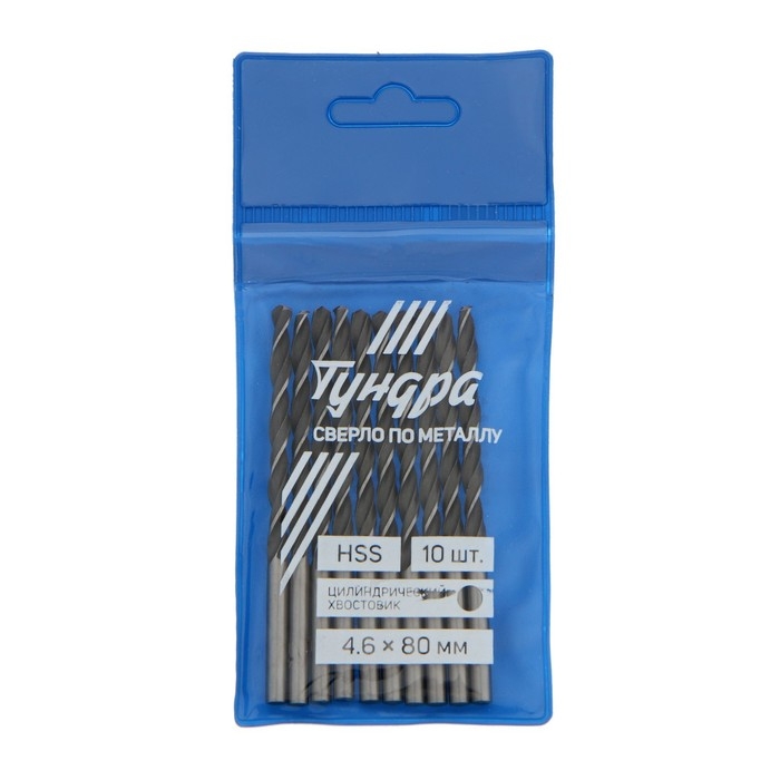 Сверло по металлу ТУНДРА, HSS, цилиндрический хвостовик, 4.6 х 80 мм, 10 шт.
