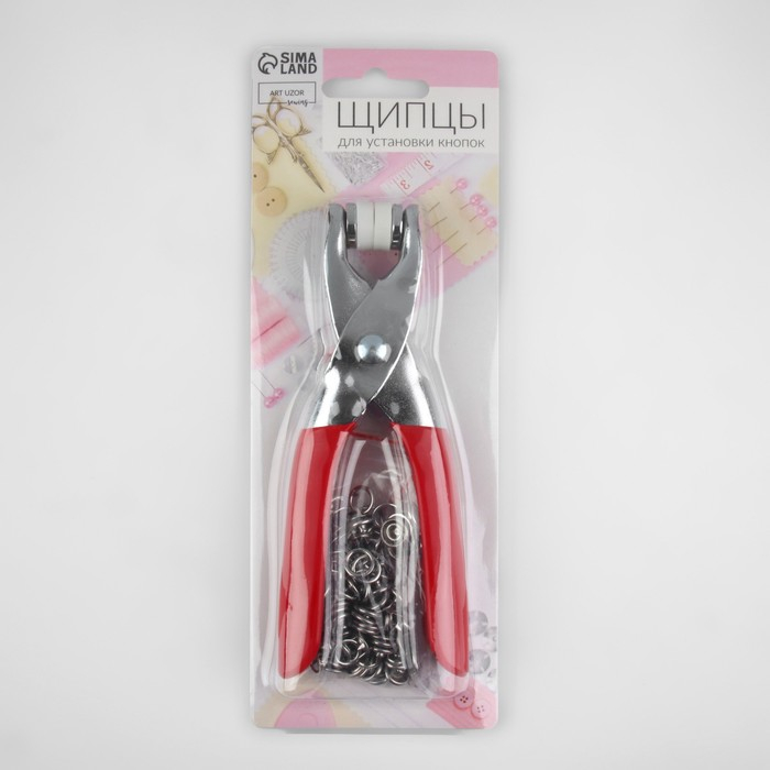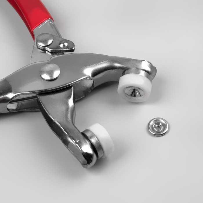 Щипцы для установки кнопок, с прорезиненными ручками, с кнопками 25 шт, 15 × 6,5 см, цвет серебряный/красный