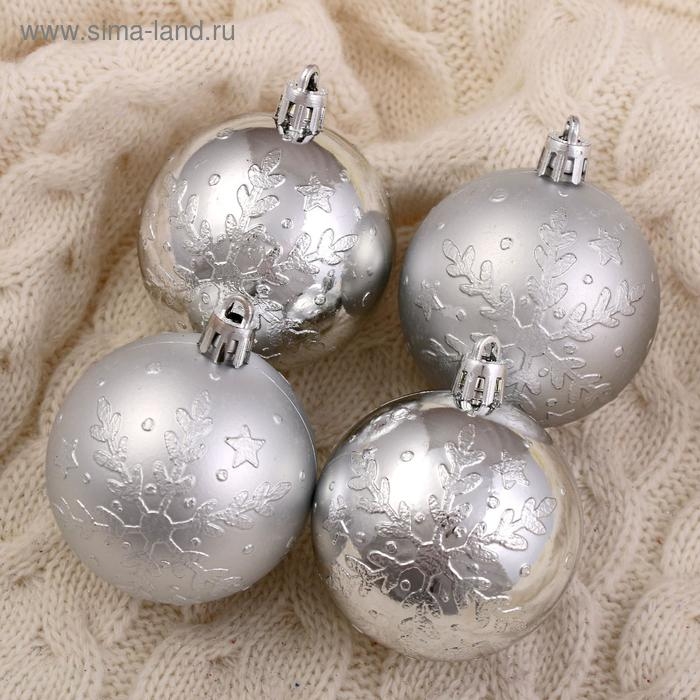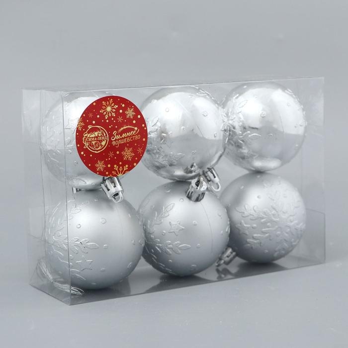 Набор шаров пластик d-6 см, 6 шт "Мидас - снежинки" серебро