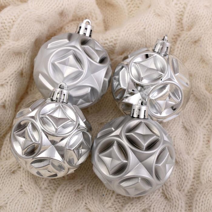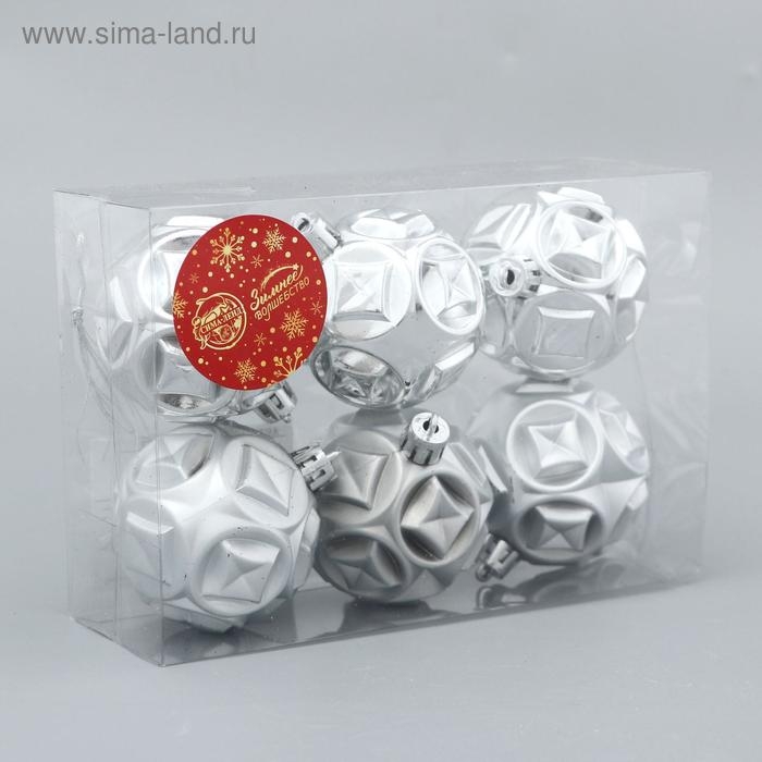 Набор шаров пластик d-6 см, 6 шт "Мидас - геометрия" серебро