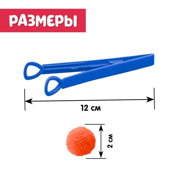 В комплект входят яркие шарики-бомбошки и пинцет для сортировки.