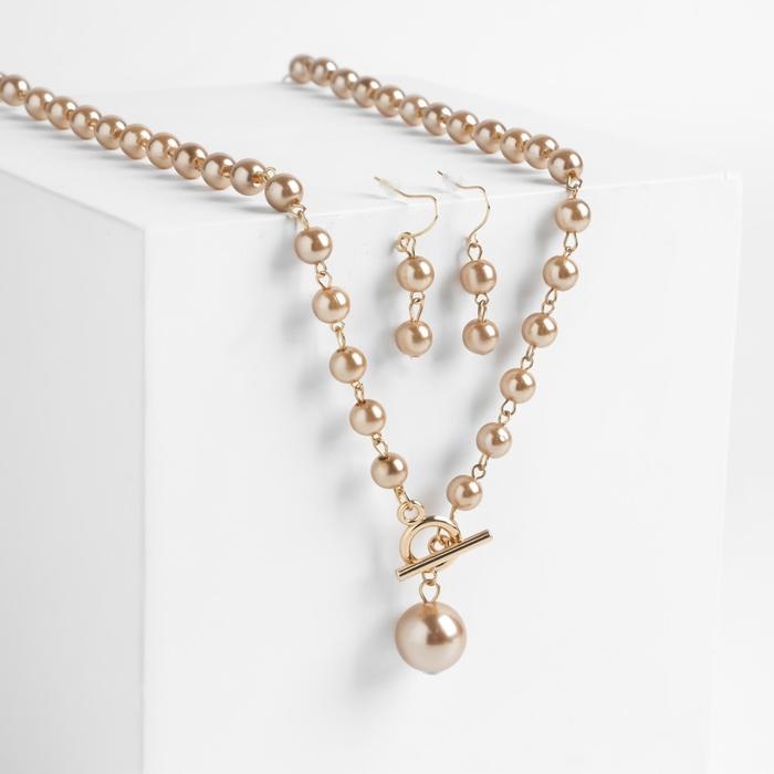 Набор 2 предмета: серьги колье «Габриела» мелкие жемчужины, цвет светло-коричневый в золоте, 45 см