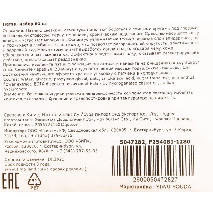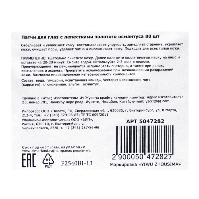 Патчи тканевые для глаз с лепестками золотого османтуса 80 шт