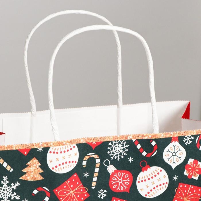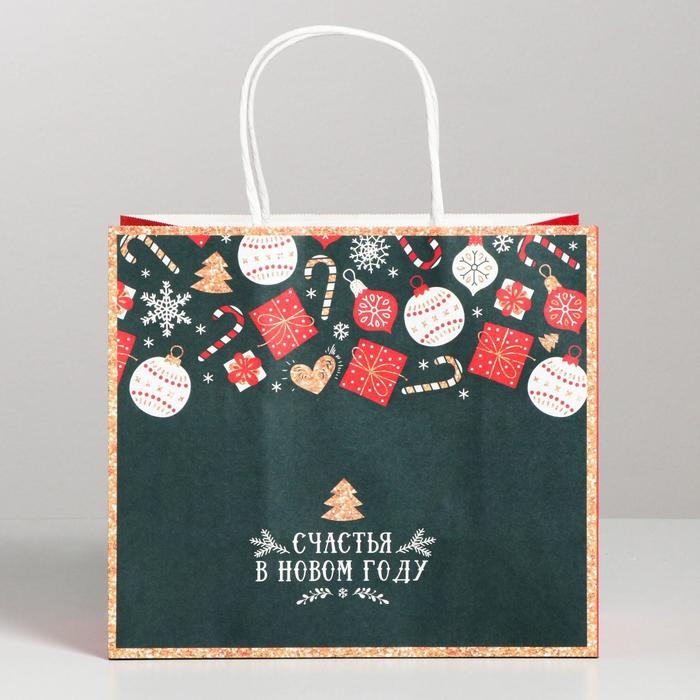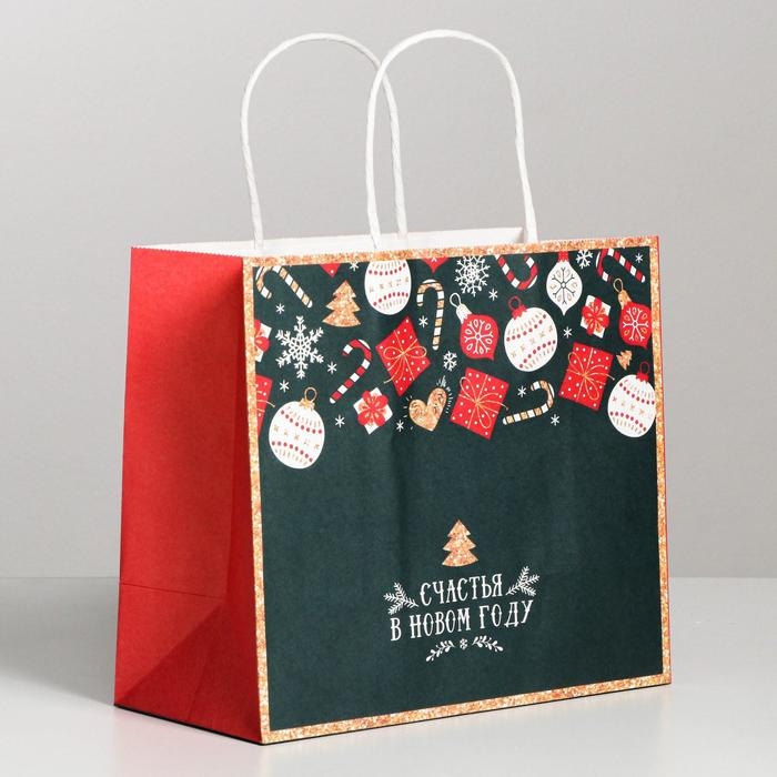 Пакет подарочный новогодний крафтовый «Счастья в Новом году», 22 х 25 х 12 см, Новый год