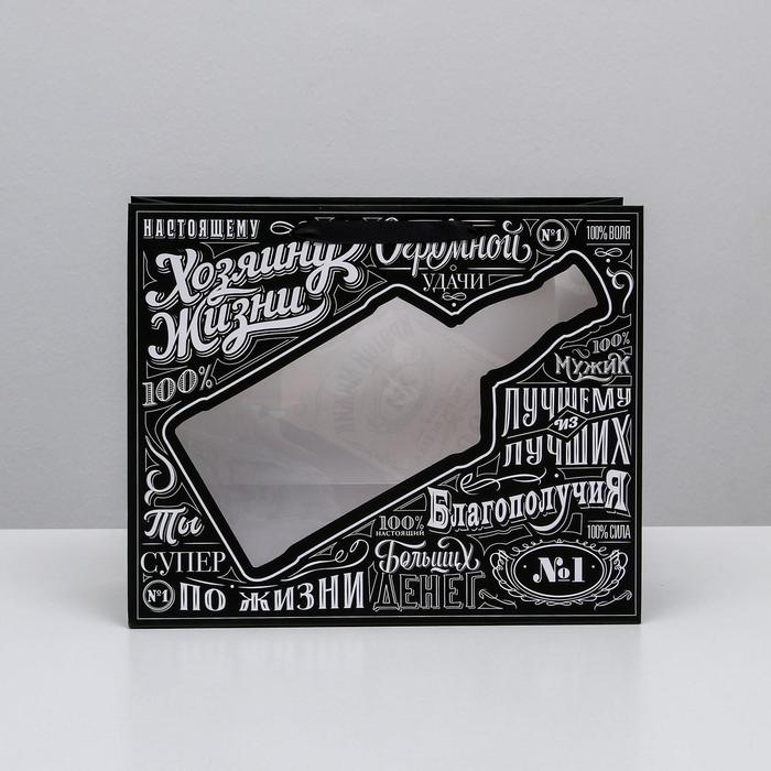 Пакет подарочный ламинированный с пластиковым окном, упаковка, «Крутой мужик» , 32,5 х 26,5 х 13,5 см