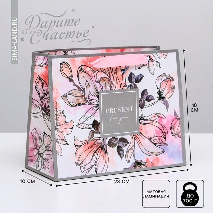 Пакет подарочный ламинированный горизонтальный, упаковка, «Present for you», MS 23 х 18 х 10 см