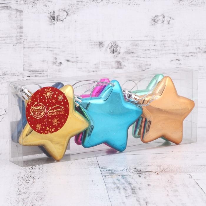Украшение ёлочное "Звёздочка глянец" (набор 6 шт) 7 см ассорти