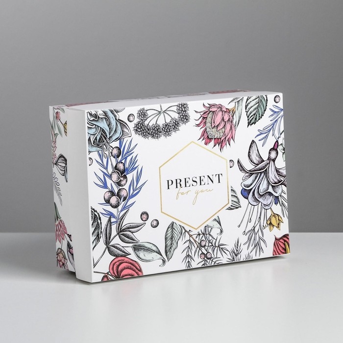 Коробка подарочная складная, упаковка, «Цветы», 21 х 15 х 7 см