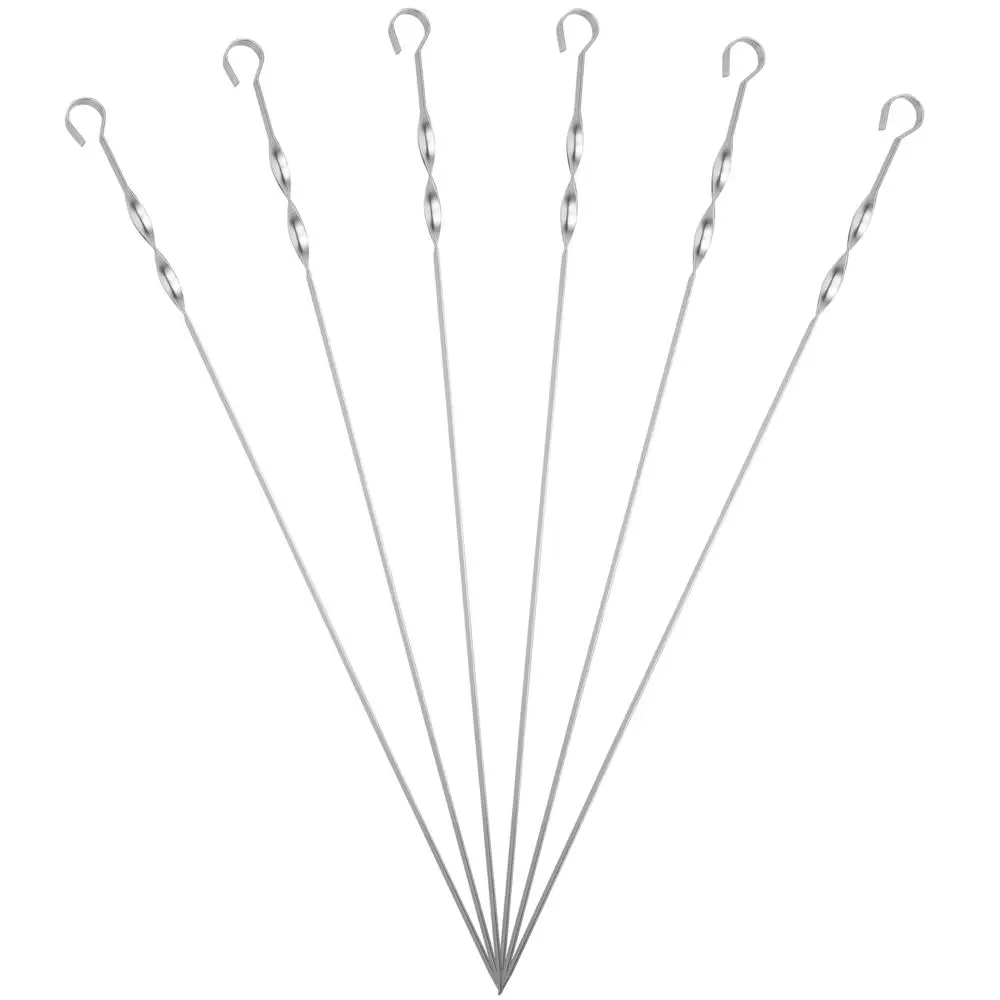 Длинные шампуры подходят для мангалов шириной до 40 см. Спираль у рукоятки позволяет фиксировать шампур при переворачивании шашлыка во время приготовления.