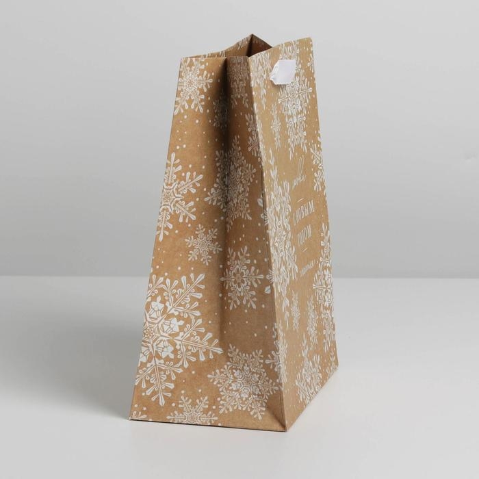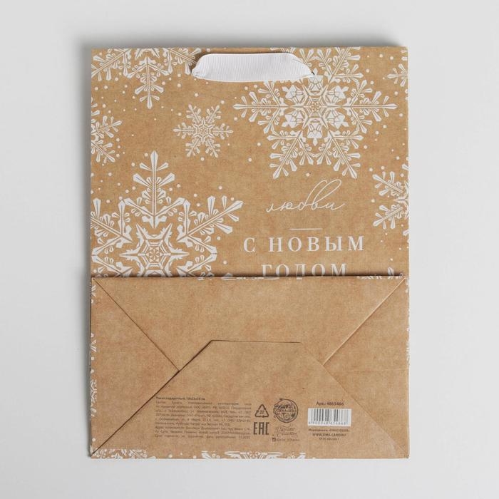 Пакет подарочный новогодний крафтовый вертикальный «С Новым годом», MS 18 х 23 х 10 см, Новый год