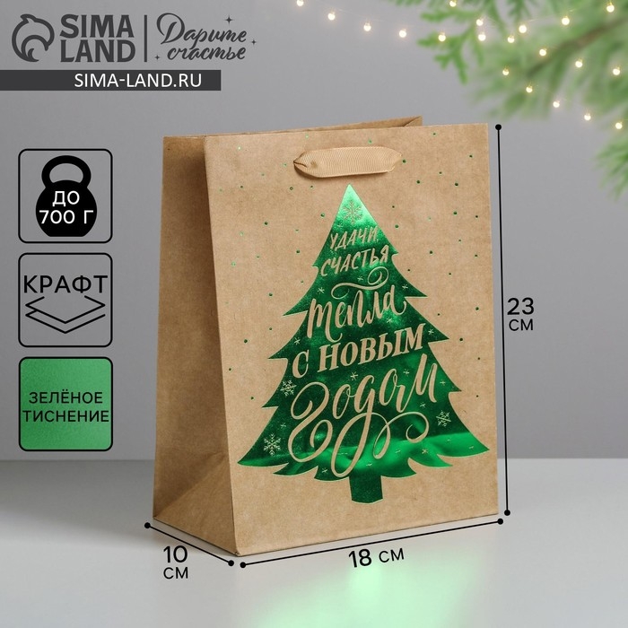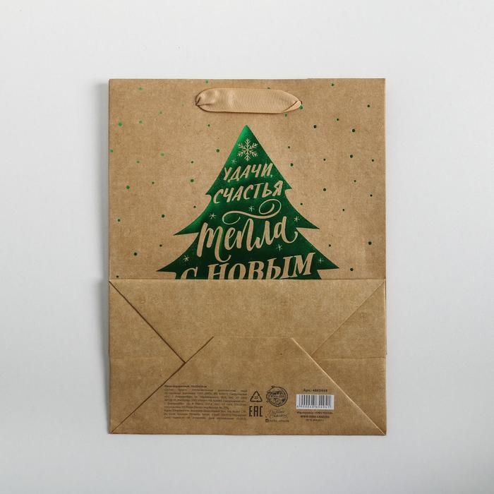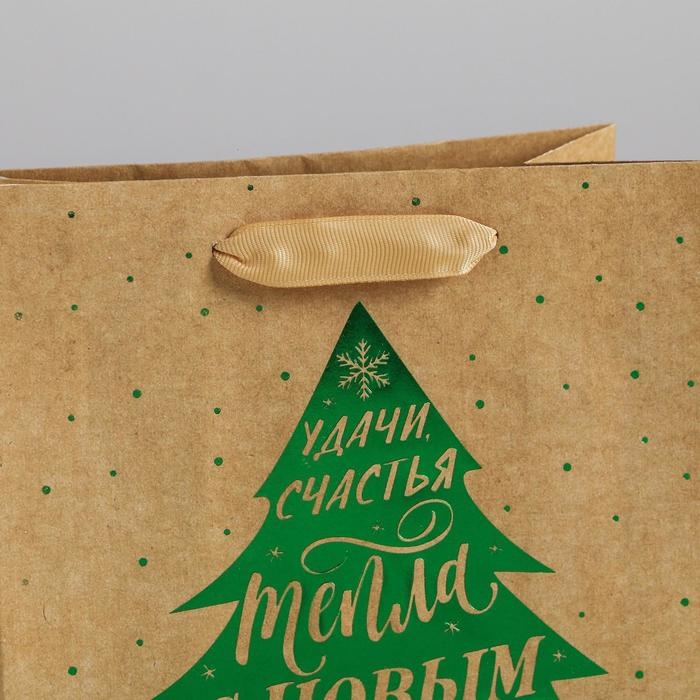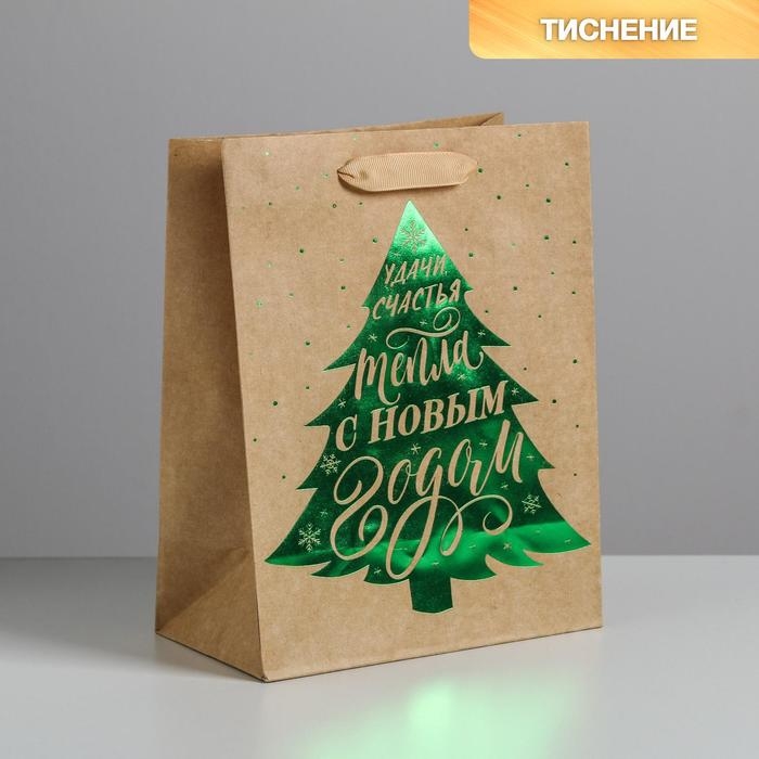 Пакет подарочный новогодний крафтовый вертикальный «Ёлочка нарядная», MS 18 х 23 х 10 см, Новый год
