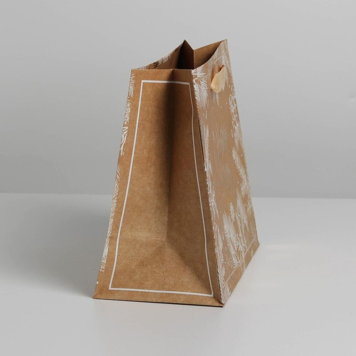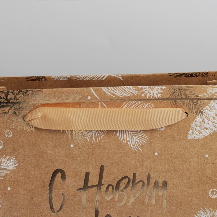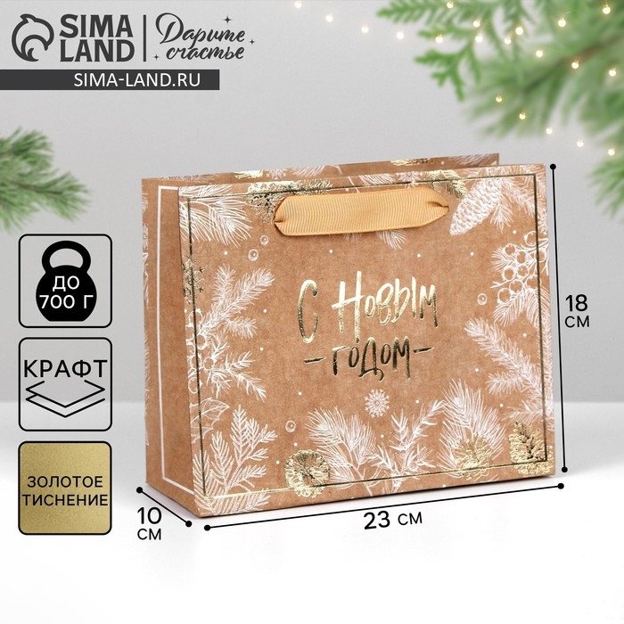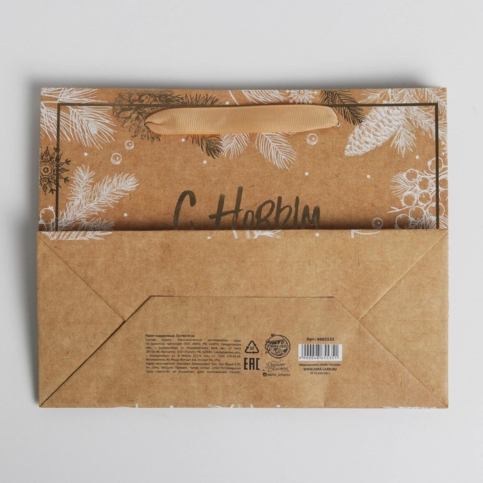 Пакет подарочный новогодний крафтовый горизонтальный «С Новым годом», MS 23 х 18 х 10 см, Новый год