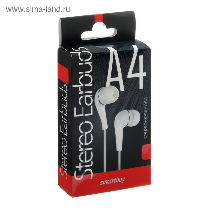 Наушники SmartBuy A4 SBE-012K, вакуумные, 95 дБ, 16 Ом, 3.5 мм, 1 м, белые