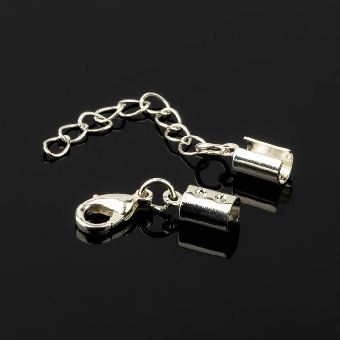 Замок-карабин (набор 5 шт.), 12×7 мм с удлинителем и обжимными круглыми концевиками 10×5 мм
