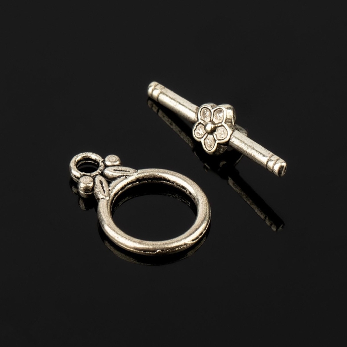 Замок-тоггл «Цветочек» с листиками, 21×14 мм (набор 2 шт.), цвет чернёного серебра
