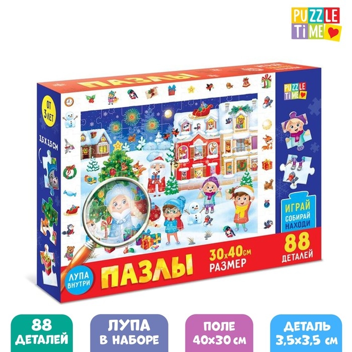 Пазл «Найди и покажи. Новый год пришёл», 88 деталей
