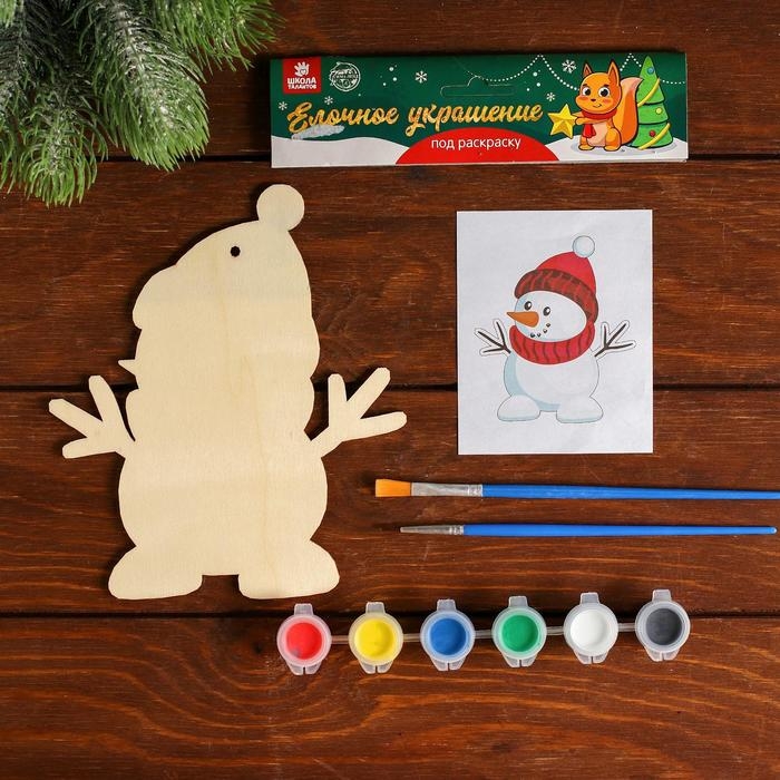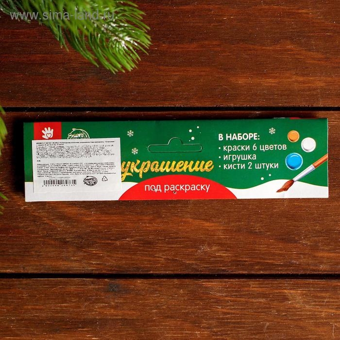 Новогоднее ёлочное украшение под раскраску «Снеговик» + краски 6 цв по 3 г, 2 кисти