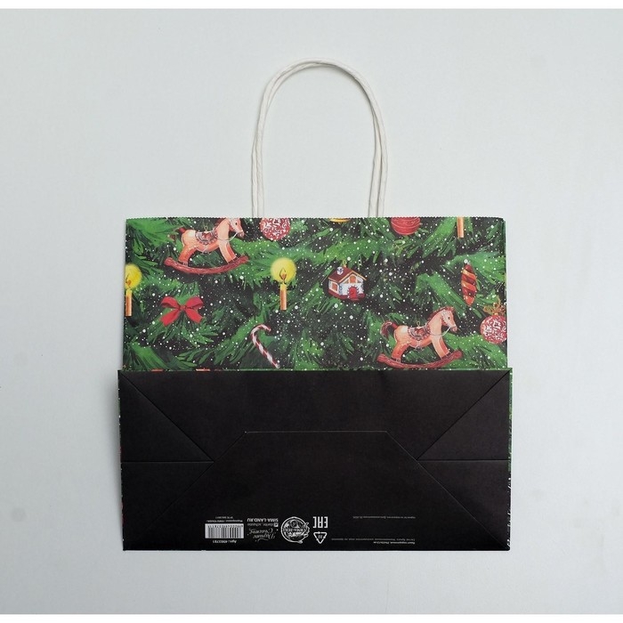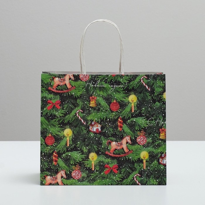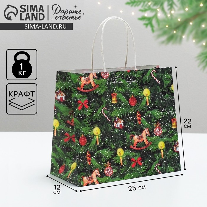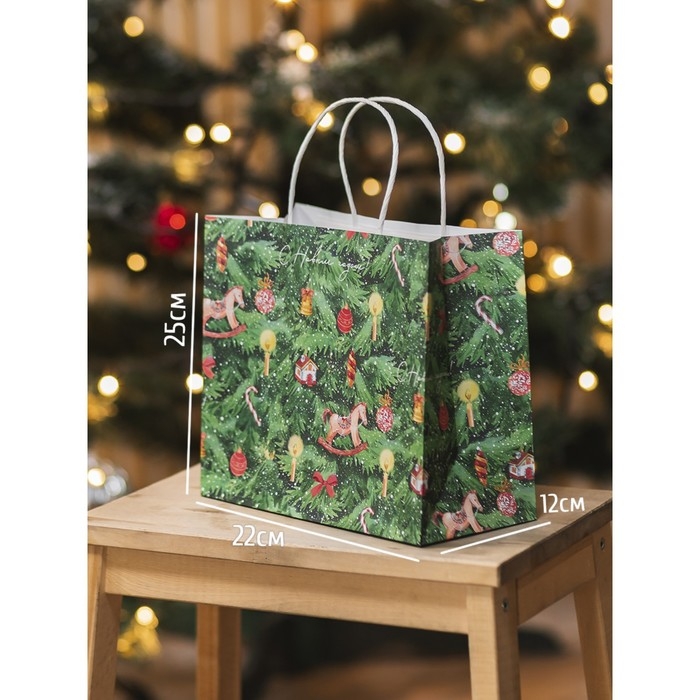 Пакет подарочный новогодний крафтовый «Новогодняя ёлочка», 22 х 25 х 12 см, Новый год