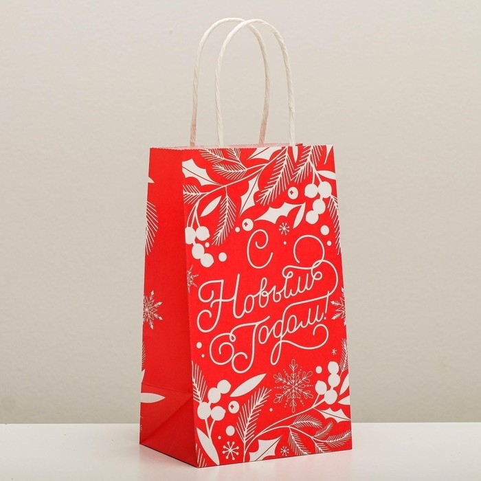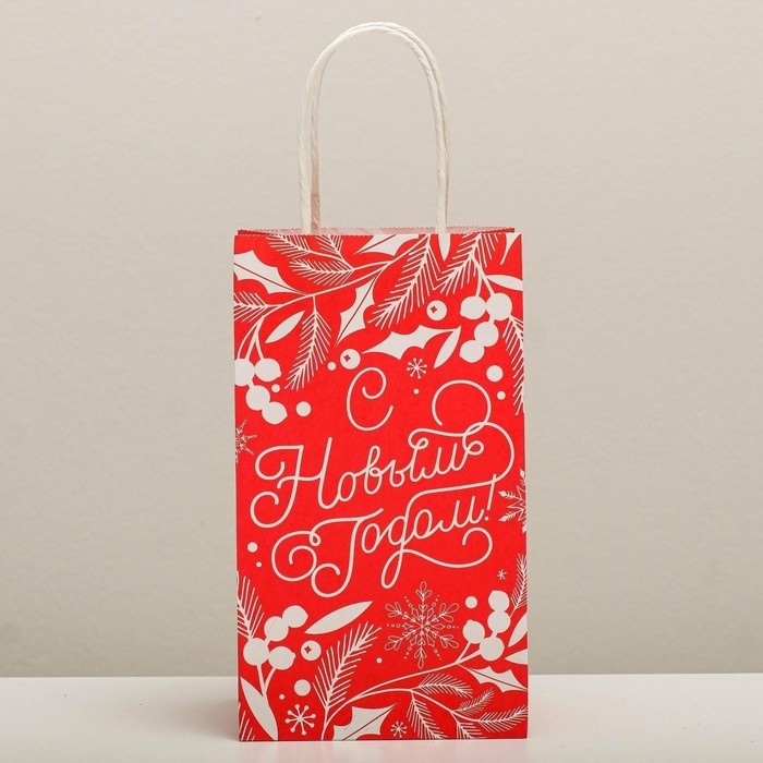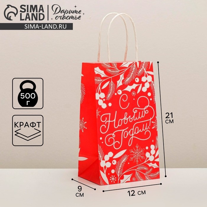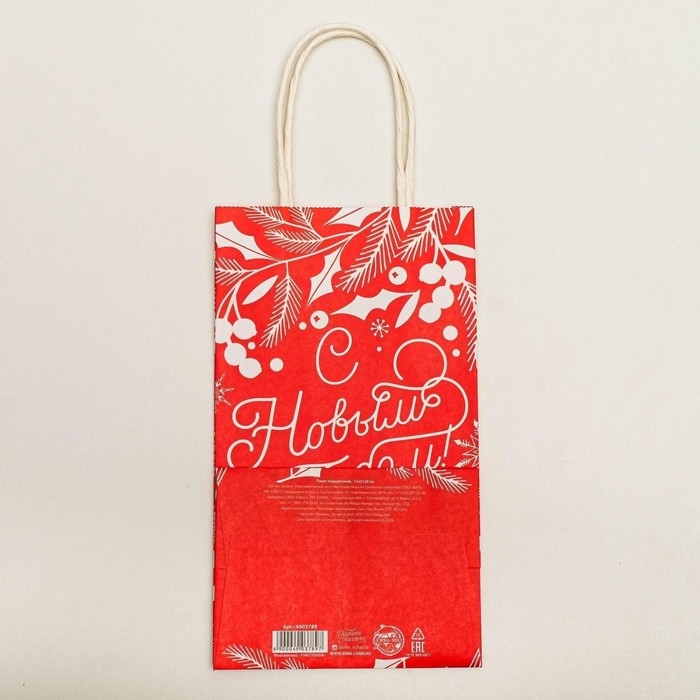 Пакет подарочный новогодний крафтовый «С Новым годом!», 12 х 21 х 9 см, Новый год