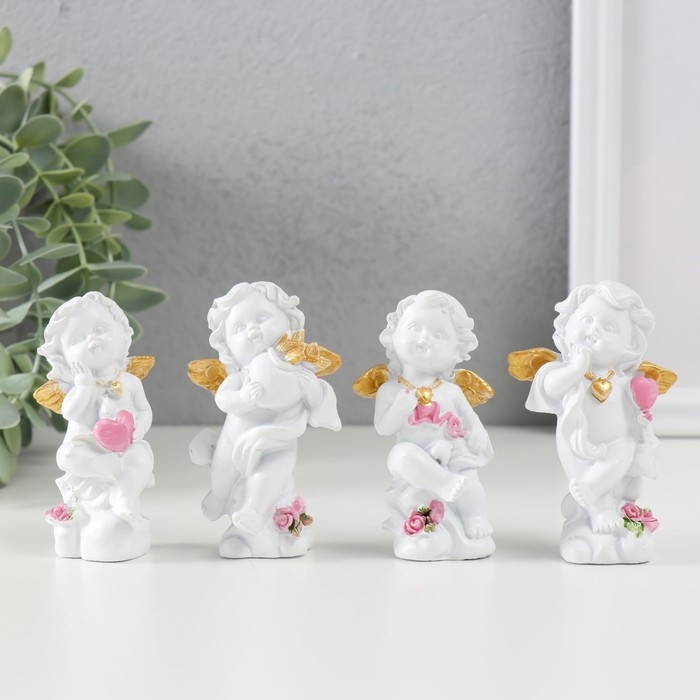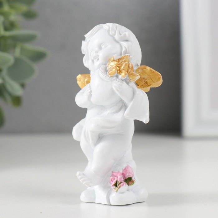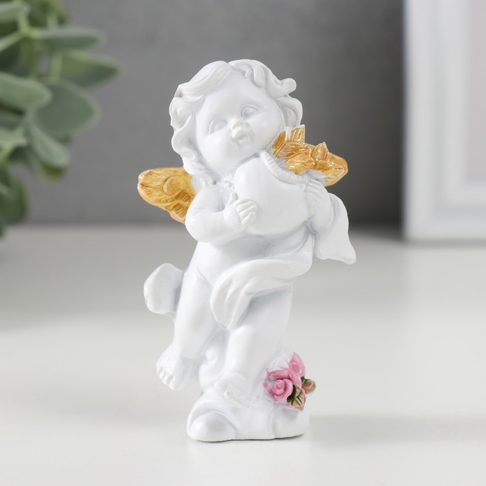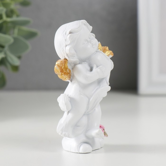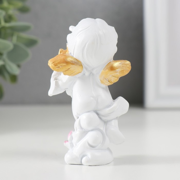 Сувенир полистоун "Белоснежный ангел с золотыми крыльями" МИКС 8х4,7х3 см