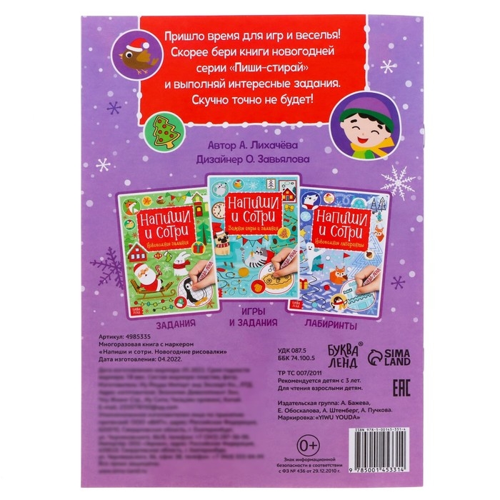 Многоразовая книга «Напиши и сотри. Новогодние рисовалки» поможет скоротать время перед долгожданным праздником, а ещё не даст заскучать и поможет потренировать важные навыки.