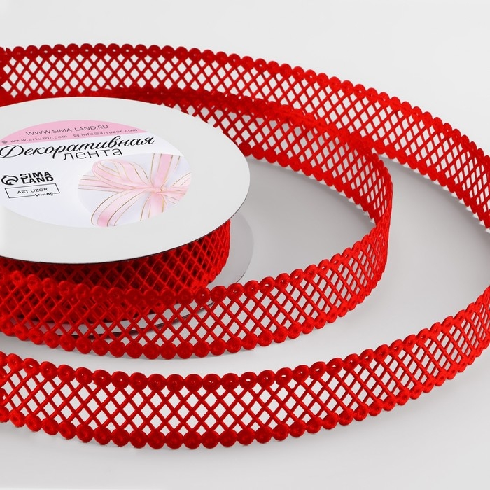 Лента фигурная «Ромбы резные», 25 мм, 9 ± 0,5 м, цвет красный